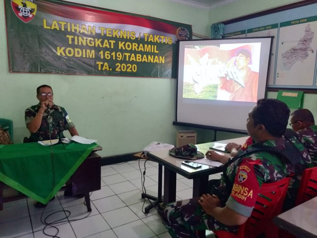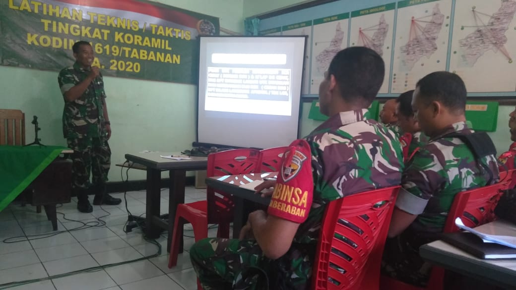 Demikian disampaikan oleh Dandim 1619/Tabanan Letkol Inf Toni Sri Hartanto saat memberikan arahan kepada anggota Kodim 1619/Tabanan dalam kegiatan latihan teknis dan taktis teritorial (Latnistis) tingkat Koramil TA. 2020 yang digelar dari tanggal 2-6 Maret 2020 di Makodim setempat.