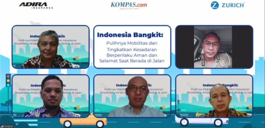 Untuk menyampaikan hasil kajian ini ke seluruh lapisan masyarakat dan meningkatkan wawasan masyarakat akan pentingnya keselamatan berkendara, Adira Insurance menggelar webinar bertajuk Indonesia Bangkit: Pulihnya Mobilitas dan Tingkatkan Kesadaran Berperilaku Aman dan Selamat Saat Berada di Jalan (30/03) yang turut dihadiri oleh AKBP Danang Sarifudin, SIK selaku Kasi Produk Dikmas Ditkamsel Korlantas Polri, Rohmat Purnadi selaku Head of Business Digest, Wayan Pariama, Head of Government Relations Adira Insurance serta Darmaningtyas selaku Ketua INSTRAN (Institut Studi Transportasi).