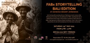 FABx mengundang para tamu untuk memasuki dunia kisah-kisah pribadi dan mendengarkan berbagai cerita yang mendalam tentang kehidupan sehari-hari yang luar biasa. Menampilkan 3 pendongeng asli Bali yang membawakan cerita magis dan mistis dari pengalaman pribadi mereka selama tumbuh dan hidup di Pulau Dewata, serta impian dan harapan mereka yang mewakili doa setiap komunitas lokal di masa yang penuh tantangan ini.