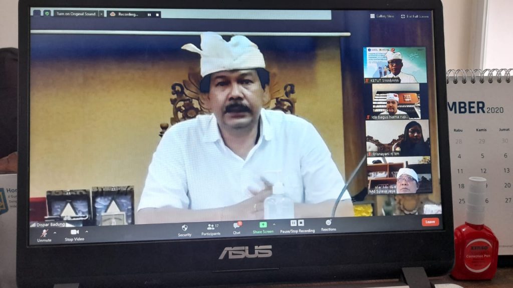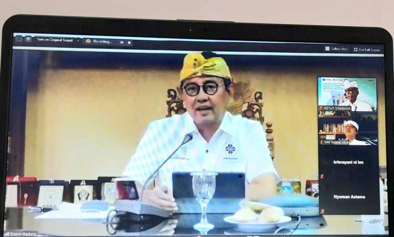 Mangupura, Lintasbali.com – Dinas Pariwisata Kabupaten Badung kembali menggelar webinar series kesiapan industri pariwisata menuju adaptasi kebiasaan baru, Senin (30/11). Menariknya, dalam paparan keynote speaker yang disampaikan IGAN Rai Suryawijaya, SE.,MBA disebutkan bahwa selama Rakornas Pemulihan Pariwisata di Nusadua pada minggu lalu, semua peserta berharap agar international boarder agar segera dibuka.