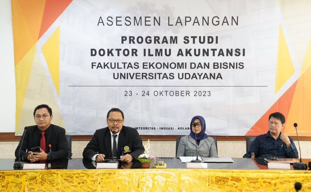 DENPASAR, lintasbali.com – Program Studi Doktor Ilmu Akuntansi Fakultas Ekonomi dan Bisnis Universitas Udayana (FEB Unud), dikunjungi oleh Tim Asesmen Lapangan Lembaga Akreditasi Mandiri Ekonomi Manajemen Bisnis dan Akuntansi (LAMEMBA) dalam rangka akreditasi program studi, bertempat di Gedung MM Fakultas Ekonomi dan Bisnis Unud Kampus Sudirman Denpasar, Senin (23/10/23).