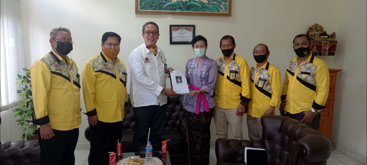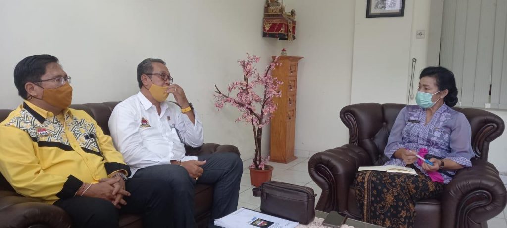 Kepala Dinas Koperasi Kabupaten Bangli, Ir. Ni Luh Ketut Wardani (kanan) saat menerima kunjungan Chef Putu Ambara Putra (Ketua Bali Chef Community-Baju Putih) dan Chef Ketut Swastika (Wakil Ketua BCC-Baju Kuning) Kamis (20/5/2021)