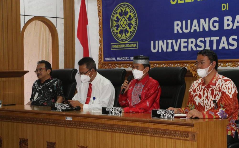 Denpasar – Badan Pembinaan Ideologi Pancasila (BPIP) Republik Indonesia lakukan kunjungan kerja ke Universitas Udayana. Kunjungan ini dalam rangka desiminasi Standar dan Kurikulum Penyelenggaraan Diklat Pembinaan Ideologi Pancasila yang dilaksanakan BPIP sekaligus dalam kesempatan yang sama dilaksanakan kuliah umum dengan Narasumber BPIP Direktur Perencanaan Pendidikan dan Pelatihan, Direktorat Perencanaan Diklat BPIP RI Sadono Sriharjo. ST.,MM dengan materi Gotong Royong Nasional Pembinaan Ideologi Pancasila Membangun Karakter & Bangsa.
