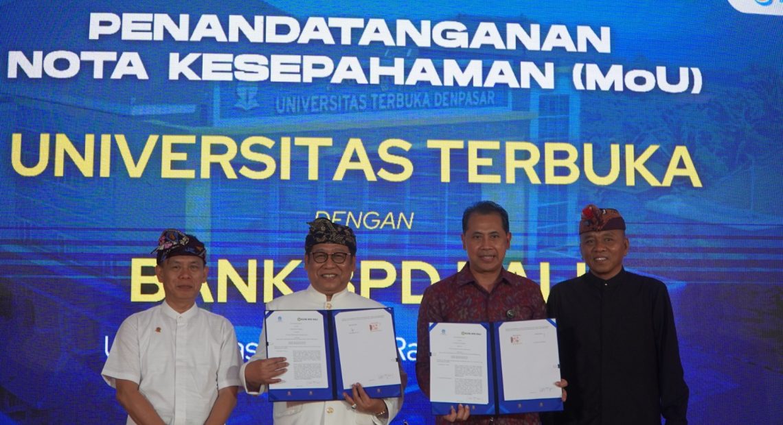 DENPASAR, lintasbali.com – PT Bank Pembangunan Daerah Bali (Bank BPD Bali) dan Universitas Terbuka (UT) Denpasar hari ini, Rabu, 2 Juli 2025 secara resmi menandatangani Nota Kesepahaman (MoU). Penandatanganan ini bertepatan dengan peresmian gedung baru UT Denpasar yang berlokasi di Jl. Raya Sesetan No.121, Sesetan, Denpasar Selatan, Kota Denpasar.