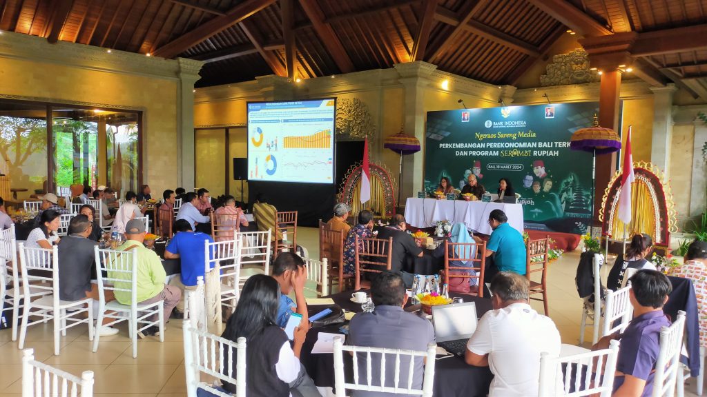 Hal tersebut disampaikan oleh R. Erwin Soeriadimadja, Kepala Perwakilan Bank Indonesia Provinsi Bali dalam acara Ngeraos Sareng Media dengan tema Perkembangan Perekonomian Bali Terkini dan Program Serambi Rupiah pada Senin, 18 Maret 2024 di Taman Dedari, Royal Pitamaha Ubud, Gianyar.
