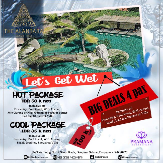 Ada 3 paket yang ditawarkan yaitu HOT Package, COOL Package dan BIG Deal. Sejak penawaran menarik ini diluncurkan, hampir setiap hari ada saja tamu yang datang untuk sekedar melepas lelah sambil berenang di The Alantara Sanur.