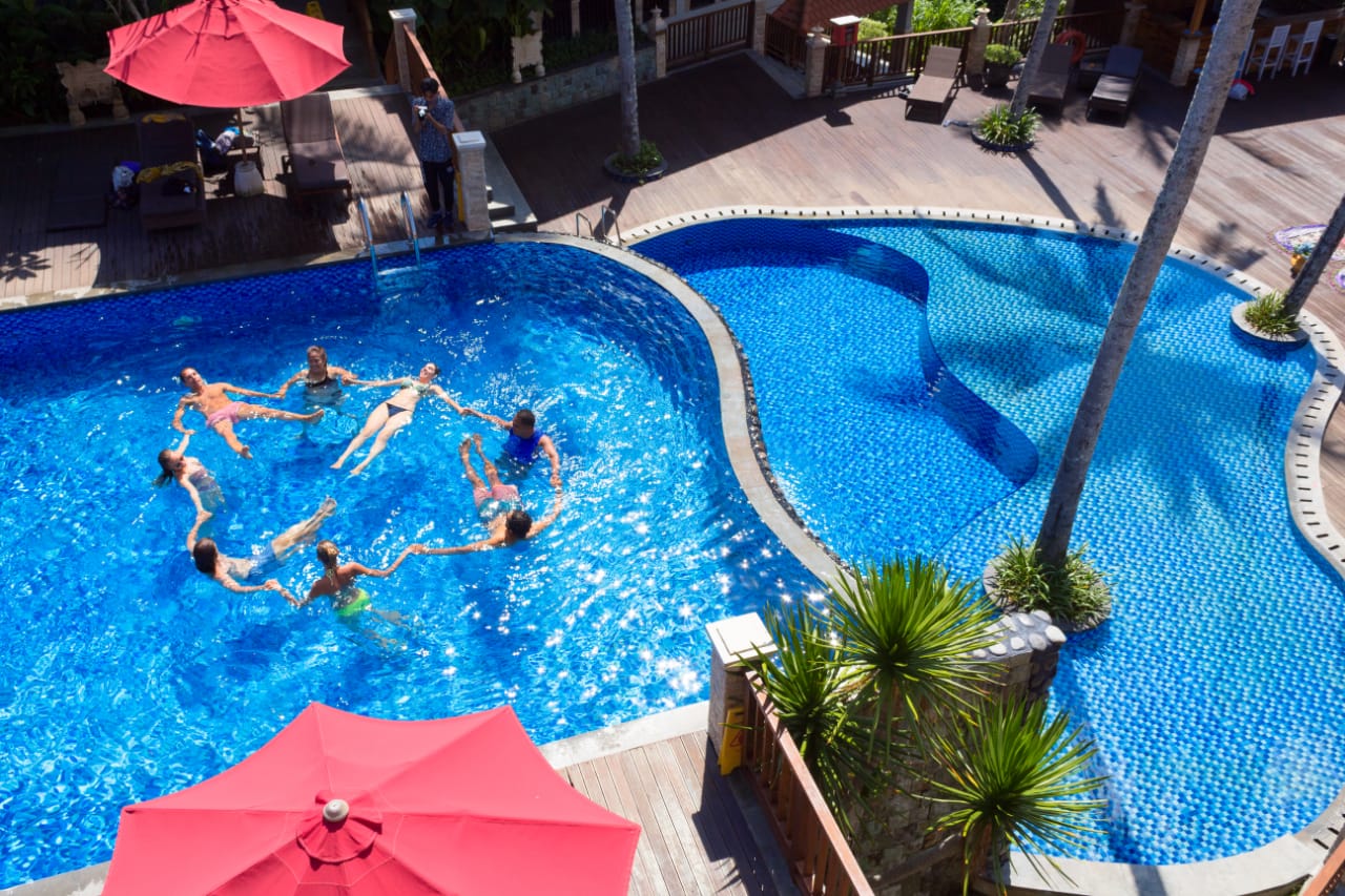 Pool Package : hanya dengan membayar Rp. 35.000 pengunjung sudah mendapatkan handuk, snack (kentang goreng atau spring roll) dan Wifi gratis di area Hotel. Jam Operasional kolam Renang dibuka mulai jam 8 pagi – 7 Malam.