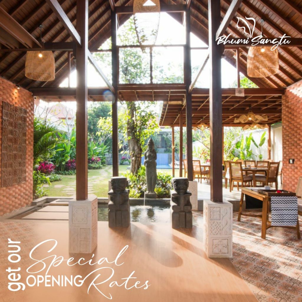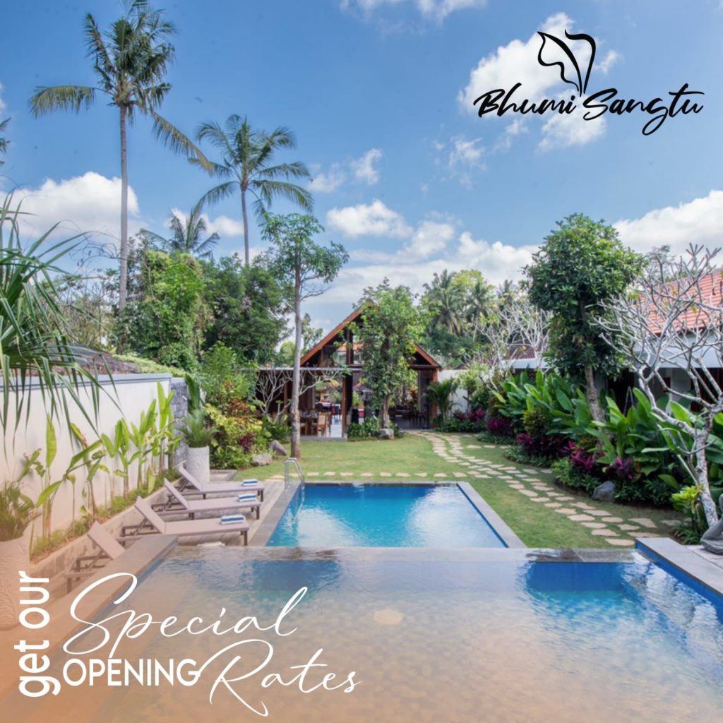 Kesan Ubud sangat kental di Bhumi Sangtu ini, selain jaraknya yang hanya 4,7km dari pusat Ubud dimana Puri Ubud, Pasar Seni Ubud dan Ubud Monkey Forest berada, design properti berkonsep kontemporer yang mengkombinasikan nuansa Bali dalam kemewahan kekinian.