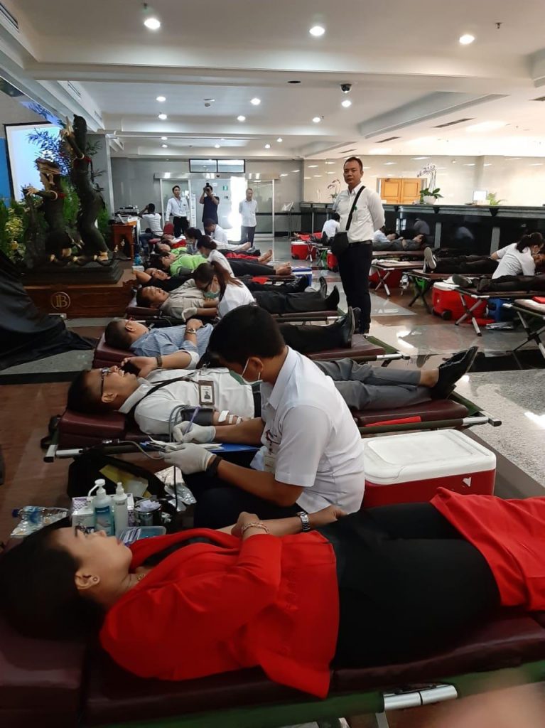 Suasana Donor Darah di Kantor Perwakilan Bank Indonesia Provinsi Bali, Selasa (25/2)