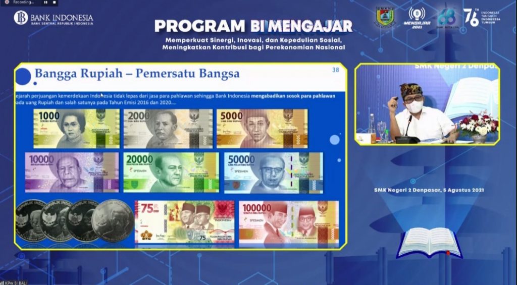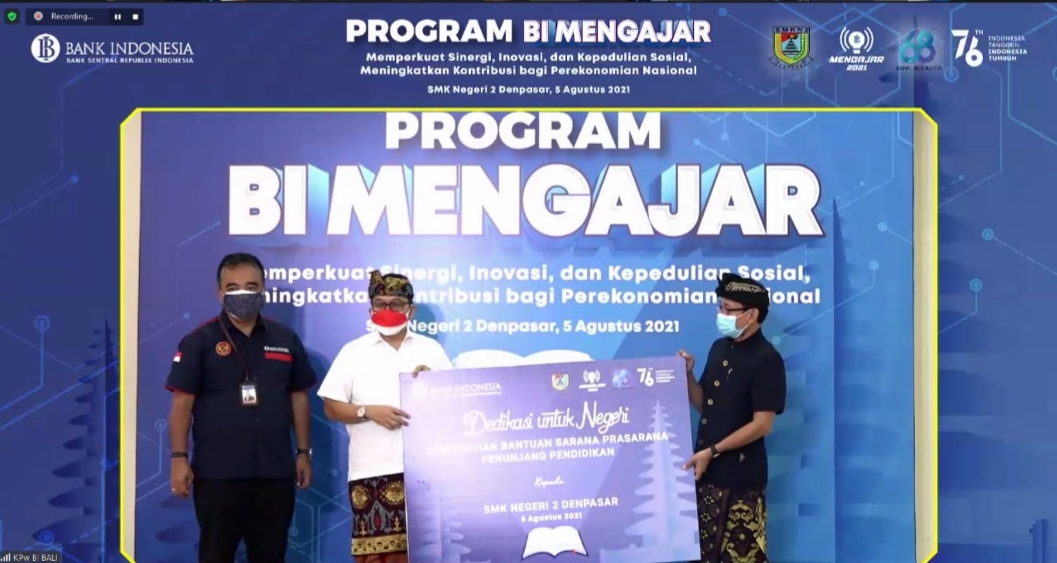DENPASAR, lintasbali.com – Kantor Perwakilan Bank Indonesia (KPwBI) Provinsi Bali menggelar Program Bank Indonesia Mengajar pada Kamis, 5 Agustus 2021 di SMK Negeri 2 Denpasar.