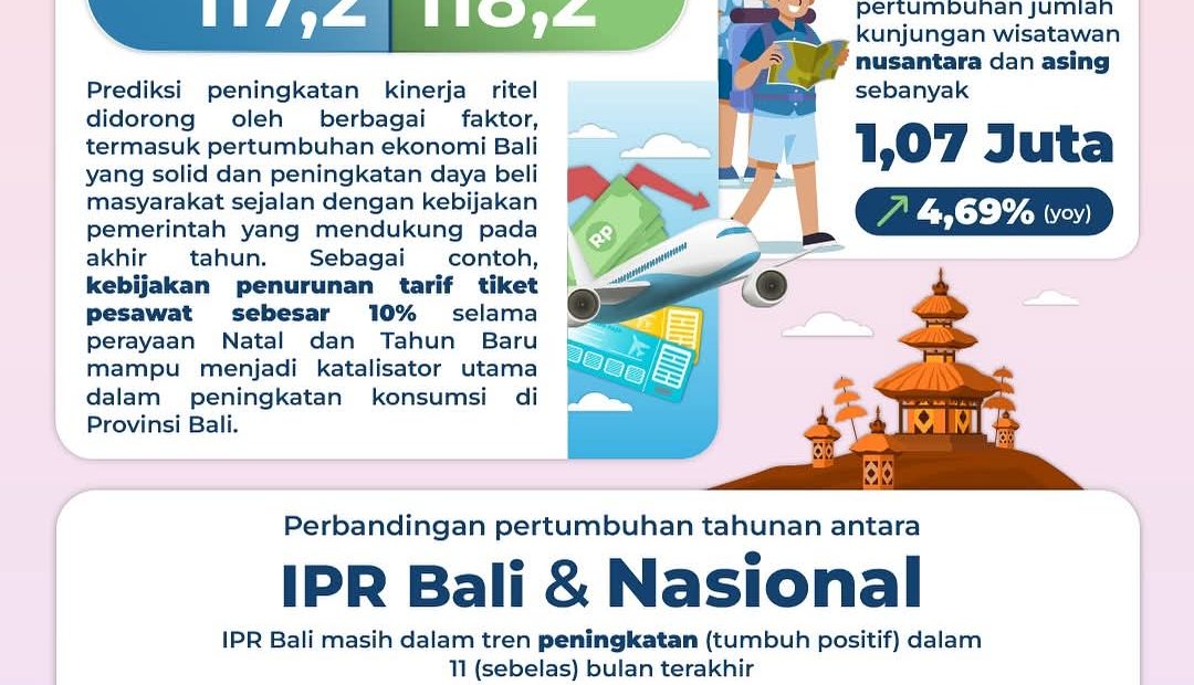 Erwin menyebut, prediksi peningkatan kinerja ini didorong oleh berbagai faktor, termasuk pertumbuhan ekonomi Bali yang solid dan peningkatan daya beli masyarakat sejalan dengan kebijakan pemerintah yang mendukung pada akhir tahun.