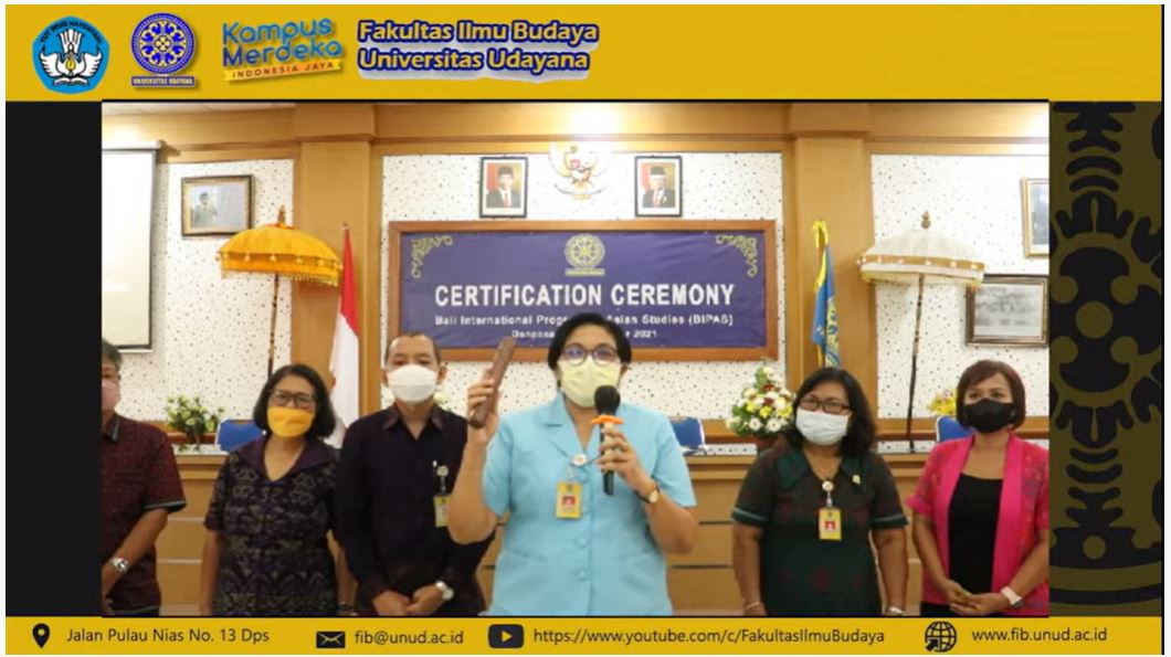 DENPASAR, lintasbali.com – BIPAS (Bali Internasional Program on Asian Studies) melaksanakan certification ceremony (upacara penyerahan sertifikat) pada Selasa 21 Desember 2021 di Ruang Soekarno kampus setempat.