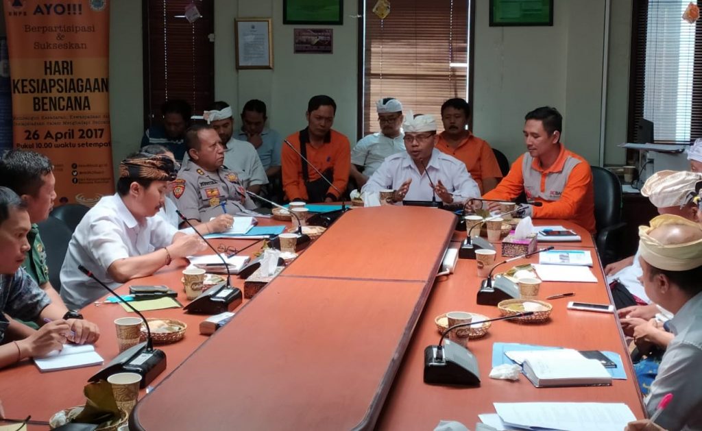 Pertemuan tersebut membahas tentang kesiapan dan kapasitas personil, ketersediaan dan distribusi sarana prasarana serta logistik peralatan. Hadir pula perwakilan dari OPD Pemerintah Provinsi Bali, Polda Bali dan Korem 163/Wirasatya serta stakeholders terkait dengan kebencanaan.