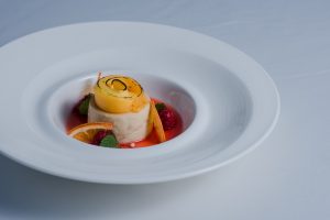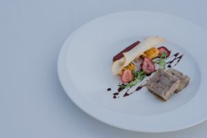 Hidangan utama berupa Beef Blade Crown, Squash Sphere with Foie Grass, Onion Soubise, Autumn Vegetables oleh Chef Patron Mandif Warokka yang dipasangkan dengan wine Mitolo Serpico Cabernet Sauvignon 2018, dan yang tak kalah pentingnya sebagai makanan penutup yang dikreasikan oleh Executive Chef Surya Perdana berupa Brem Pannacotta yang dipasangkan dengan minuman One Love oleh Manta Rum.