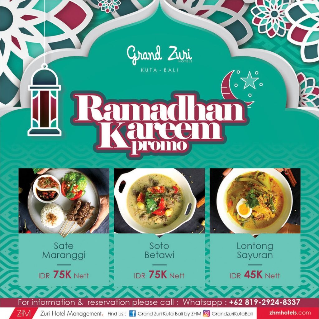 Hotel yang berlokasi di jantung kuta ini, tepatnya Jalan raya kuta no 81, menyediakan menu buka puasa ramadan yakni promo Ramadhan Kareem dengan menu bercita rasa nusantara andalannya yaitu Sate meranggi, soto betawi dan lontong sayur.