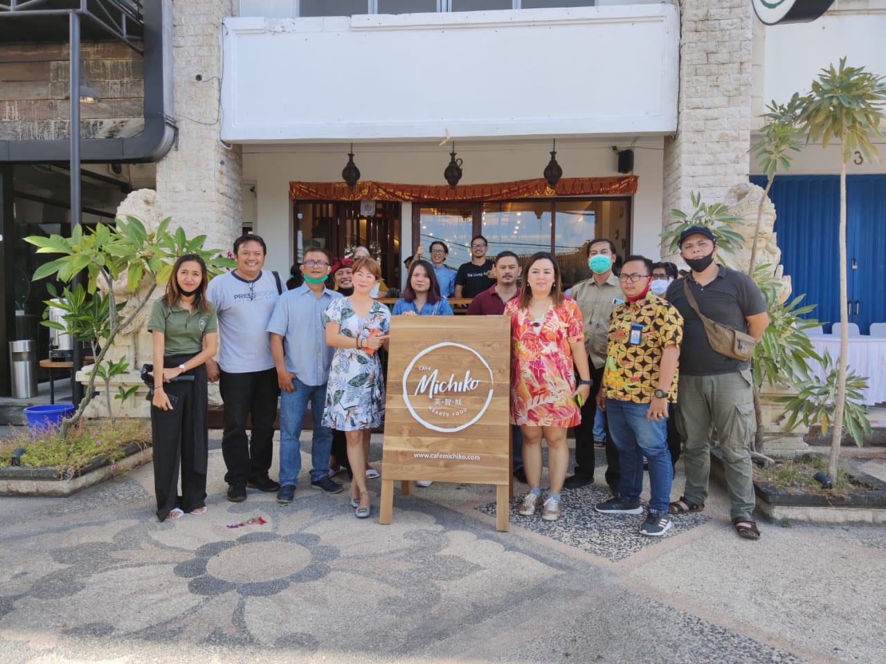 Pembukaan Cafe Michiko dihadiri oleh para kolega bisnis, travel agent, ekspatriat dari berbagai negara dan kalangan media pariwisata dengan tetap memperhatikan prosedur pencegahan covid-19 dengan sanitasi dan pengecekan suhu badan disertai oleh Staff dan karyawannya yang mengenakan alat pelindung diri seperti pelindung wajah (face Shield). (Rls)