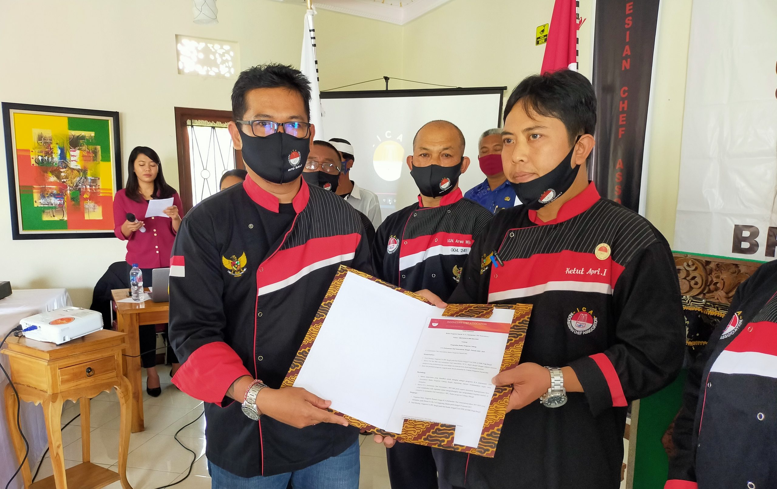 Chef Hendra Mahena resmi melantik dan mengukuhkan Chef I Ketut Apri Irawan sebagai Ketua ICA BPC Bangli ditandai dengan penyerahan Surat Keputusan (SK) Pengurus dan penyerahan Bendera Pataka ICA BPC Bangli.