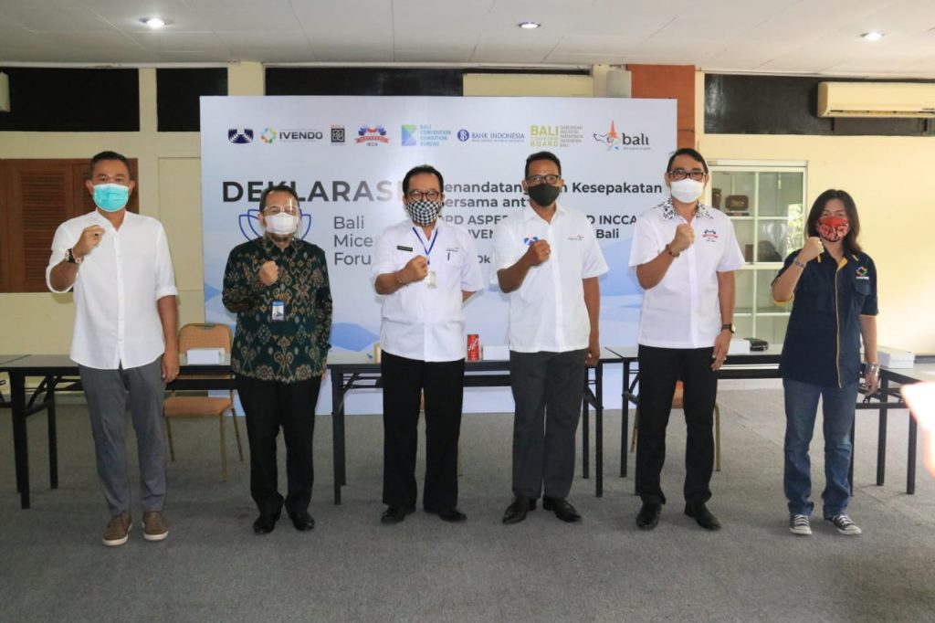 Pandemi COVID 19 yang melanda telah mendorong empat asosiasi MICE dan Event di Bali yaitu DPD ASPERAPI Bali, DPD IVENDO Bali, DPD INCCA Bali dan SIPCO Bali sepakat membentuk sebuah wadah yaitu Bali MICE Forum yang dituangkan dalam sebuah deklarasi dan penandatanganan kesepakatan. Kesepakatan tersebut di tanda tangani oleh Wagub Bali, Kepala Perwakilan BI Bali , Ketua Bali Tourism Board IB Partha Adnyana serta perwakilan dari asosiasi. (Rls)
