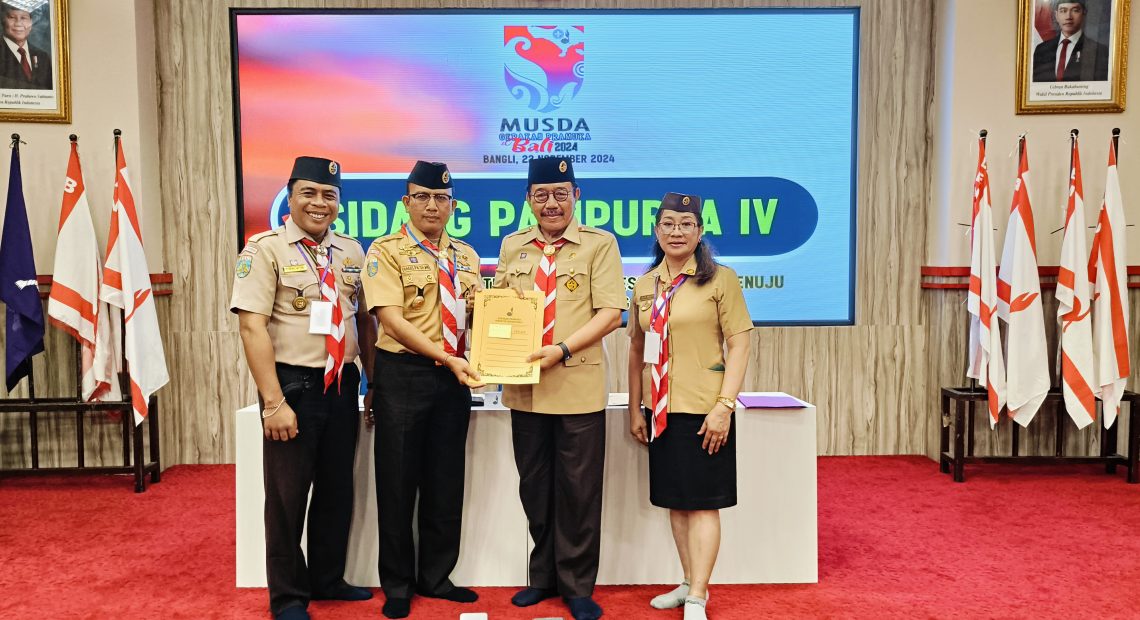 Penetapan dan pengesahan Prof. Ir. Tjokorda Oka Artha Ardhana Sukawati, M.Si sebagai Ketua Kwartir Daerah Gerakan Pramuka Bali masa bakti 2024-2029 ditandai dengan penyerahan berkas yang menjadi hasil Musda Gerakan Pramuka Bali 2024 oleh Presidium.