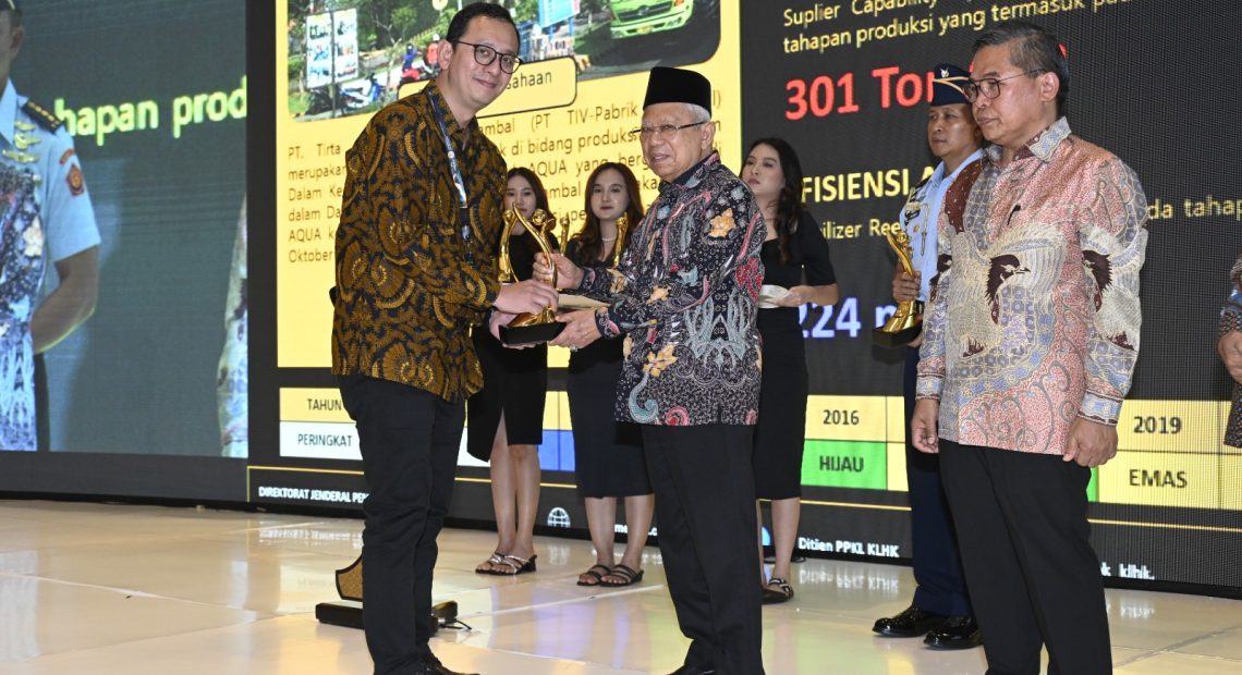 Anugerah ini diterima langsung oleh Regional Operation Director Danone Indonesia Sigit Prayudo. Menteri Lingkungan Hidup dan Kehutanan, Dr. Ir. Siti Nurbaya Bakar M.Sc. turut mendampingi Wapres pada kesempatan tersebut.
