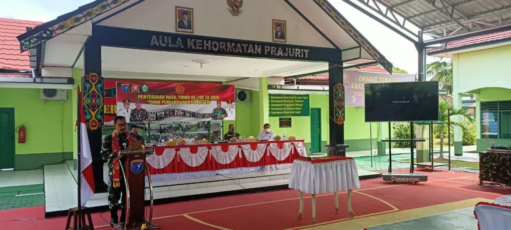 Sampit, Lintasbali.com – Penutupan  program TNI Manunggal Membangun Desa (TMMD) secara langsung dipimpin Danrem 102/Panju Panjung Brigadir Jenderal TNI Purwo Sudaryanto, bertempat di Aula Makodim 1015/Spt Jln. MT. Haryono No. 56 Kelurahan Mentawa Baru Hulu Kecamatan Mentawa Baru Ketapang, Rabu (21/10/2020)