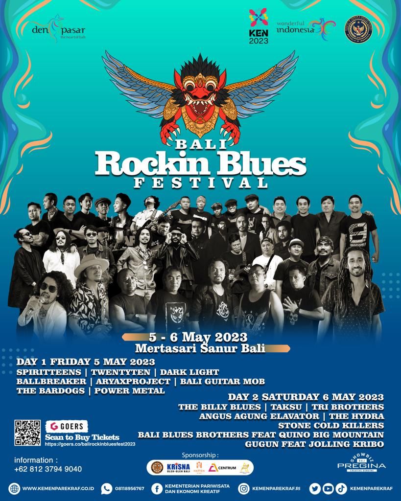 DENPASAR, lintasbali.com – Bali Rockin Blues Festival 2023, salah satu event tahunan yang diselenggarakan oleh Dinas Pariwisata Kota Denpasar telah memasuki kurasi agenda nasional Kharisma Event Nusantara 2023 Kementrian Pariwisata & Ekonomi Kreatif yang akan digelar pada Jumat-Sabtu, 5-6 Mei 2023 di area Paving, Mertasari Desa Adat Intaran Sanur Bali.