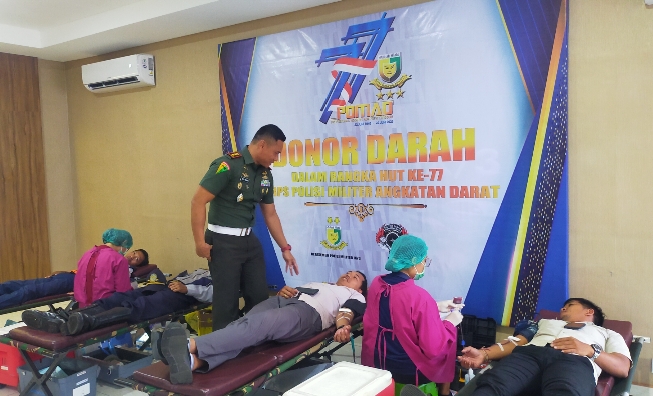 “Kami rutin menyelenggarakan donor darah, setahun dua kali tepatnya pada HUT TNI dan HUT Satuan Polisi Militer. Kami menargetkan 200 kantong darah hari ini,” kata Letkol Cpm F. Okto Femula.