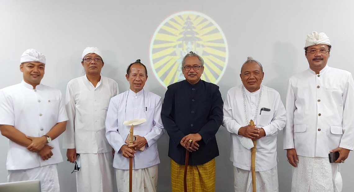Dari kiri: Nararya Narotama, Made Mangku Sulasa Jaya, Ida Pandita Mpu Jaya Brahmananda, Ida Pandita Mpu Nabe Jaya Acharyananda, Ida Pandita Mpu Acharya Jaya Daksa Vedananda, dan I Made Sarjana.