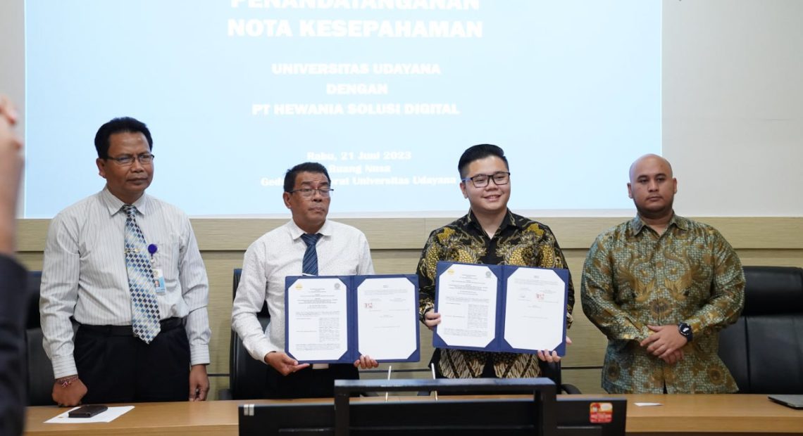 MANGUPURA, lintasbali.com – Universitas Udayana (Unud) dan PT. Hewania Solusi Digital secara resmi mengawali kerjasama yang ditandai dengan senjata Nota Kesepahaman oleh kedua belah pihak bertempat Ruang Nusa Gedung Rektorat Unud Kampus Bukit Jimbaran, Rabu, 21 Juni 2023.