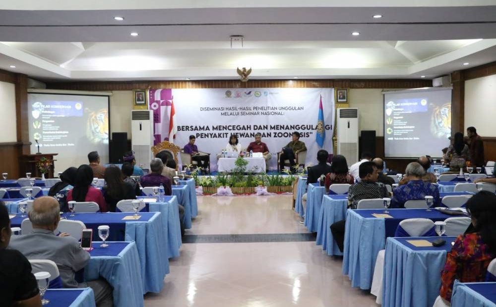 DENPASAR, lintasbali.com – Fakultas Kedokteran Hewan Universitas Udayana (FKH Unud) melaksanakan kegiatan Diseminasi Hasil-Hasil Penelitian Unggulan melalui Seminar Nasional dengan tema “Bersama Mencegah dan Menanggulangi Penyakit Hewan dan Zoonosis” bertempat di Inna Sindhu Beach Hotel Sanur, Kamis, 6 Juli 2023.
