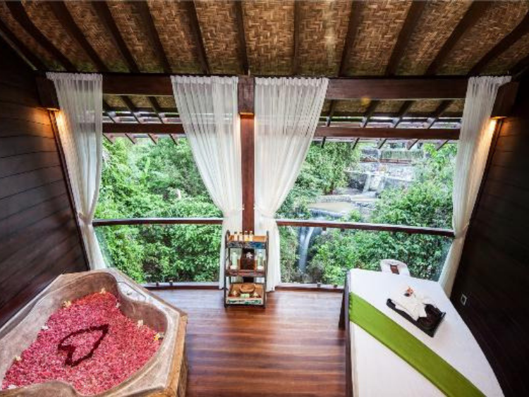 Selama perawatan, panca indra kita akan dimanjakan dan dibuat rileks oleh therapist profesional. Menikmati treatment di The Sanctoo Spa & Wellness, pengunjung akan dimanjakan dengan pemandangan hutan tropis, sungai Wos dan suara air terjun.