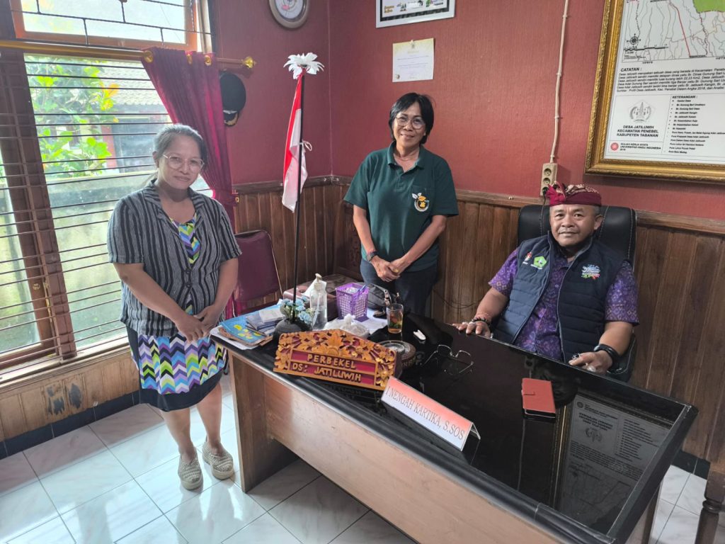 Dr. I Gusti Ayu Diah Yuniti, M.Si (tengah) bersama Kepala Desa Jatiluwih Tabanan I Nengah Kartika (kanan) dan Ketua PKK Jatiluwih Ny Sukawati Kartika (kiri)