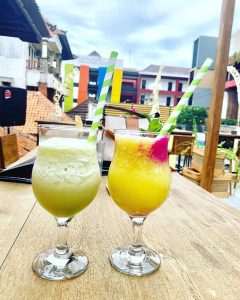 Jika mencari kudapan atau cemilan sehat dan lezat di daerah Legian, Royal Tunjung Bali tempatnya. Memiliki DOYANlicius Cafe yang terletak di Rooftop, memberikan kita sensasi menikmati kudapan sehat nan lezat diatas ketinggian dengan pemandangan 360 derajat. DOYANlicius Cafe menyajikan aneka macam menu makanan dan minuman yang dapat memanjakan lidah para pemburu kuliner.
