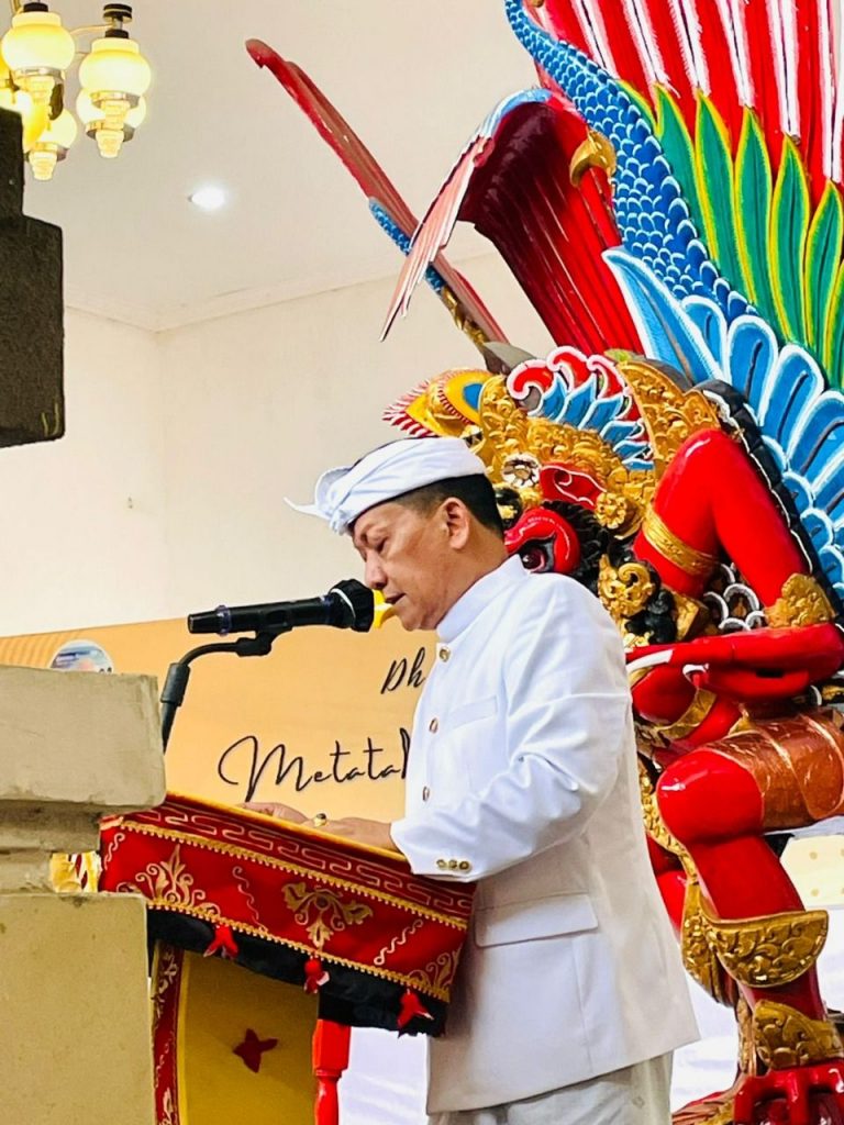 Hal tersebut disampaikan Ketua Pengurus Harian PHDI Provinsi Jawa Barat, Brigjen TNI (Purn) I Made Riawan S.Psi., M.I.P. saat memberikan sambutan dalam kegiatan Dharma Tula dan Upacara Metatah Bersama Se-Bandung Raya yang diselenggarakan oleh DPC Prajaniti Kota Bandung, pada hari Sabtu, 30/5 di Balai Sosial Pura Agung Wira Loka Natha, Cimahi.