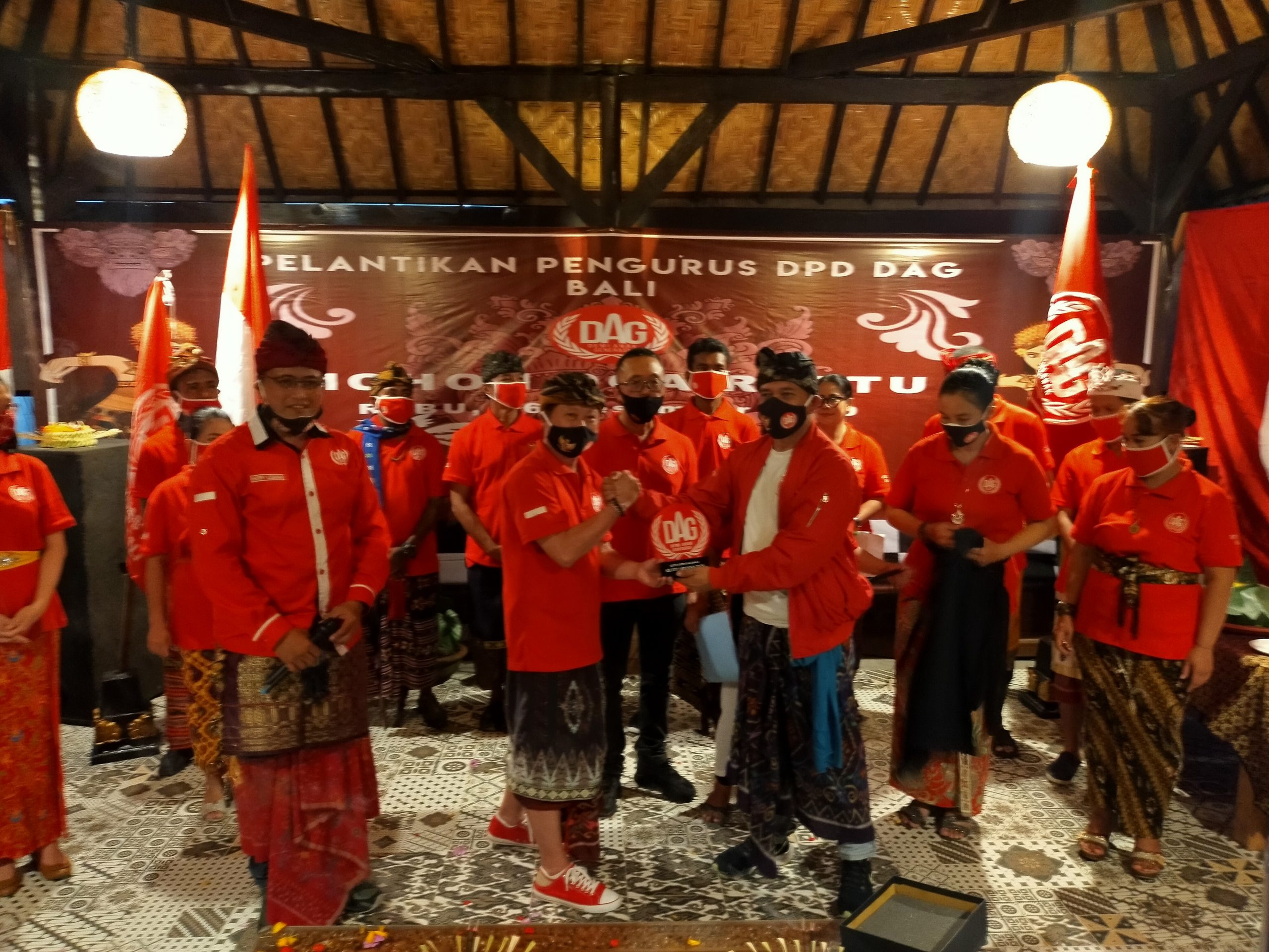 Terpilih sebagai Ketua DPD DAG Bali Periode 2020-2024 Ketut Aryana Tan. Prosesi pelantikan dan pengukuhan pengurus DPD DAG Bali ditandai dengan penyerahan SK Kepengurusan, penyematan pin dan dirangkaikan dengan pemotongan tumpeng yang diikuti oleh seluruh undangan yang hadir.