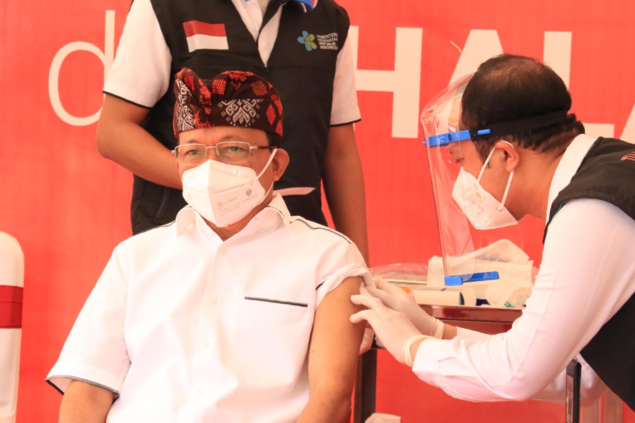 DENPASAR, Lintasbali.com – Vaksin sinovac akhirnya sudah diterima Gubernur Bali Wayan Koster dalam acara pencanangan vaksinasi, Kamis (14/01/2021) lalu dan menjadi orang pertama di Bali sebagai contoh sekaligus menghilangkan persepsi rasa takut bagi masyarakat yang akan diberi vaksin.