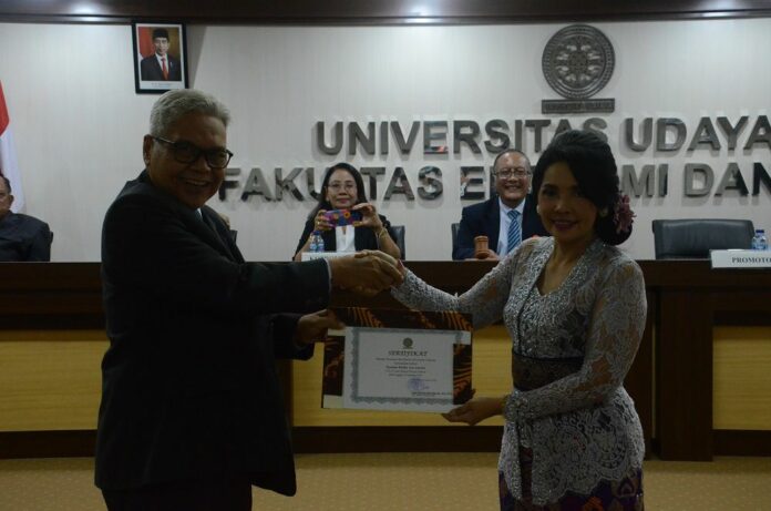 Promovenda merupakan Doktor ke Sembilan Puluh Tujuh (97) di lingkungan Program Studi Doktor Manajemen, dan merupakan Doktor yang Ke- Seratus Sembilan Puluh Satu (191) di lingkungan Fakultas Ekonomi dan Bisnis Universitas Udayana. Sertifikat kelulusan diberikan langsung oleh Prof. Dr. I Wayan Gede Supartha, SE, SU selaku Promotor.(unud.ac.id)