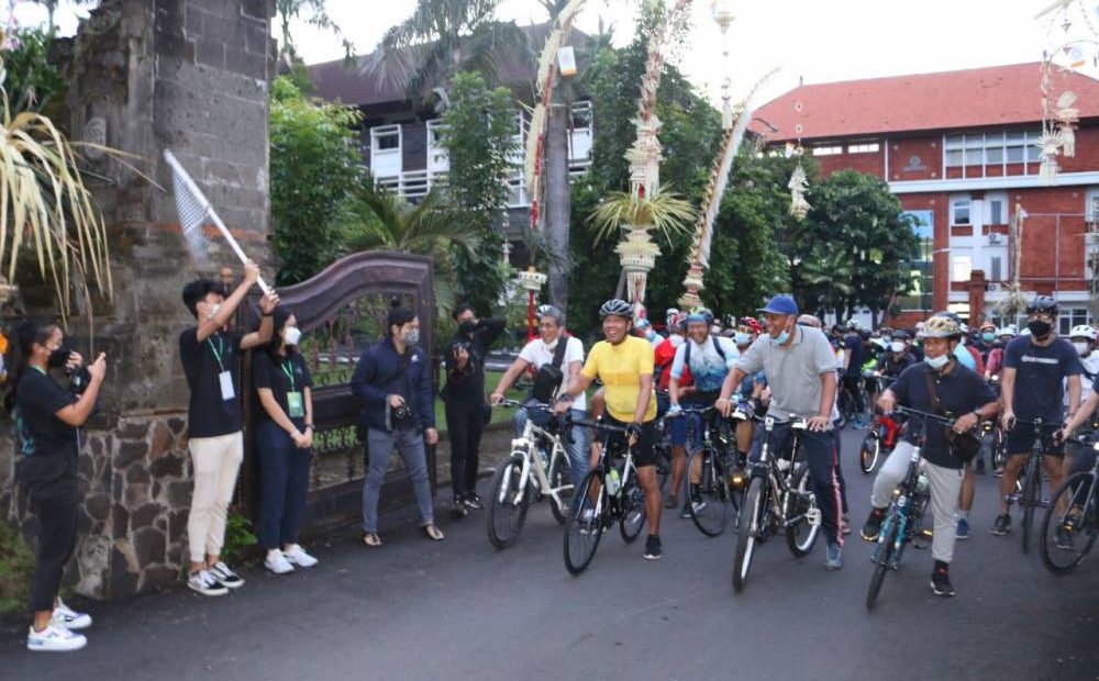 Funbike start dari Kampus Sudirman Denpasar dan finish di lokasi penanaman bakau di areal Mangrove Benoa Pesanggaran. Rektor Unud turut bersepeda mengikuti kegiatan ini.