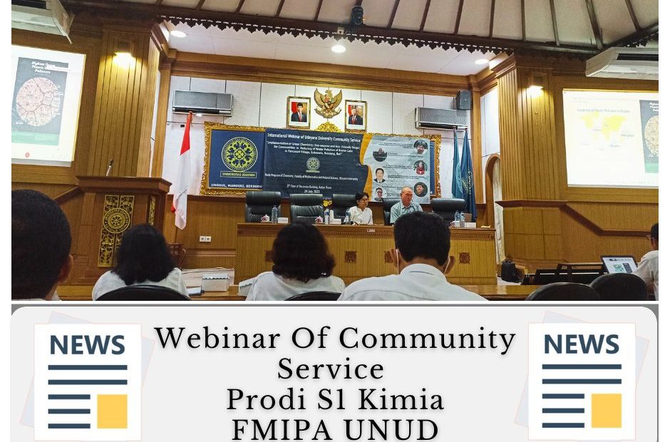 MANGUPURA, lintasbali.com – Pada tanggal Senin, 24 Juli 2023, telah terlaksana webinar internasional pengabdian masyarakat bertempat di gedung rektorat Universitas Udayana lantai 3, kampus Bukit Jimbaran dan webex yang dilaksanakna oleh Progam studi kimia dengan tema “Implementasi Green Chemistry (Eco-Enzyme and Eco-Friendly Soaps) Bagi Masyarakat dalam Mengurangi Pencemaran Air Danau Buyan di Desa Pancasari, Sukasada, Buleleng, Bali”.