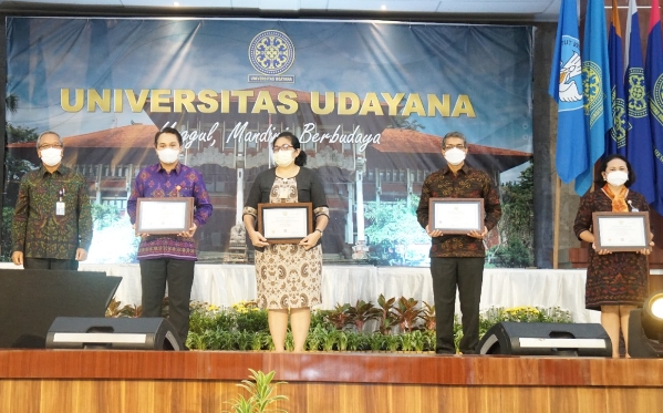 Penghargaan-penghargaan tersebut diantaranya apresiasi kepada mahasiswa berprestasi dan Dosen pembimbingnya, penyerahan sertifikasi akreditasi internasional dan Program studi Unggul, penghargaan Unud Journal Ranking (UJAR) dan bantuan pengelolaan, apresiasi pemberitaan terbaik dan terbanyak untuk unit kerja, penyerahan penghargaan kepada Kepala Biro Kemahasiswaan ( I Dewa Gede Oka, S.E) yang akan memasuki masa purna tugas terhitung tanggal 1 Januari 2022, penandatanganan Prasasti Gedung baru serta launching beberapa Sistem Informasi oleh USDI.