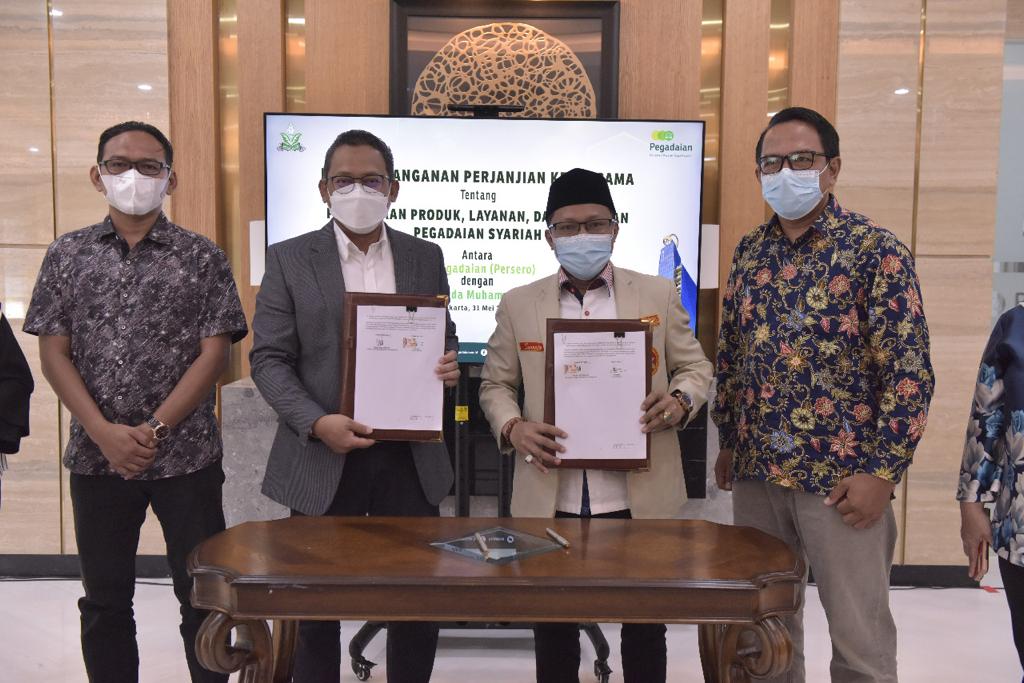 Hal ini ditandai dengan penandatanganan Perjanjian Kerja Sama (PKS) antara Direktur Jaringan, Operasi dan Penjualan PT Pegadaian (Persero), Damar Latri Setiawan dengan Ketua PP Pemuda Muhammadiyah, Sunanto, di Kantor Pusat Pegadaian, Senin (31/05/2021).
