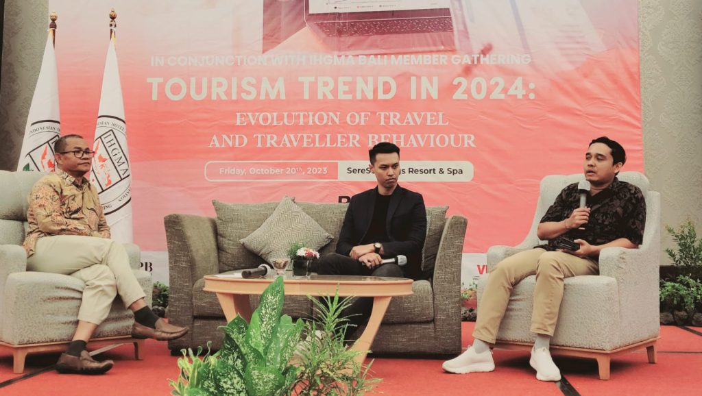 Tema acara kali ini adalah Tourism Trends in 2024 : Evolution of Travel and Traveller Behaviour, dengan menghadirkan dua narasumber yaitu, I Komang Kariyana (Kelompok Ahli III IHGMA DPD Bali) dan Gegen Sumarjana (Country Manager Booking.Com Indonesia).