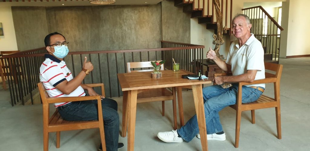 Ketut Warasana (kiri) bersama Mr. Phil (kanan) yang berkunjung ke Gajah Mas Gallery