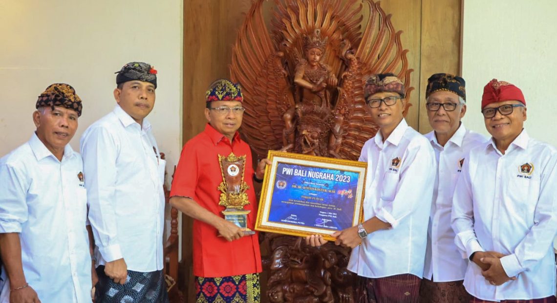 DENPASAR, lintasbali.com – Gubernur Bali, Wayan Koster mendapatkan penghargaan dari Persatuan Wartawan Indonesia (PWI) Provinsi Bali yaitu PWI BALI NUGRAHA 2023 pada hari Kamis, 11 Mei 2023 karena dinilai sebagai Tokoh Publik yang memiliki ketokohan dan kontribusi besar dalam memajukan pembangunan dan kehidupan Pers di Bali.