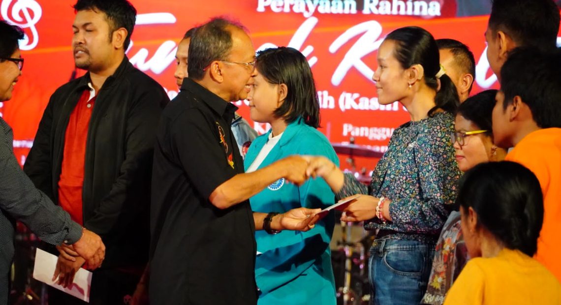 Tak hanya kata-kata, kasih sayang diwujudkan nyata malam itu. Di hadapan hadirin yang memenuhi tribun, Gubernur menyerahkan tali kasih kepada para siswa SMA/SMK dan penyandang disabilitas, sebuah tindakan sederhana namun menyentuh, simbol perhatian dan cinta dari pemerintah kepada rakyatnya.