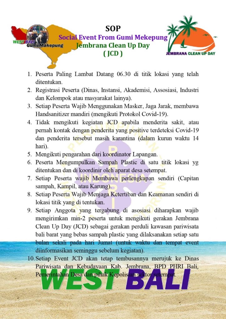 Jembrana, Lintasbali.com – Sebagai bentuk kepedulian terhadap keberlangsungan lingkungan, Perhimpunan Hotel dan Restoran Indonesia (PHRI) Kabupaten Jembrana bekerja sama dengan Pemerintah Kabupaten Jembrana akan mengadakan Jembrana Clean Up Day (JCD) pada hari Jumat (9/10). Kegiatan ini merupakan Social Event From Gumi Makepung bertempat di Destinasi Wisata Internasional di Pantai Water Bee Gilimanuk Jembrana Bali.