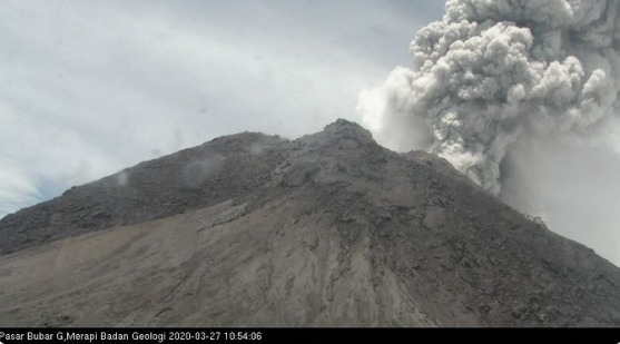 Yogyakarta, Lintasbali.com – Gunung Merapi bererupsi dengan tinggi kolom erupsi ± 5.000 meter dari puncak pada hari Jumat (27/3) pukul 10.56 WIB, sebagaimana menurut laporan dari Balai Penyelidikan dan Pengembangan Teknologi Kebencanaan Geologi (BPPTKG) Yogyakarta.