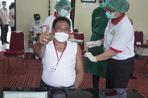 Ditambahkannya, tiga hari pasca disuntik Vaksin Sinovac dirinya tidak mengalami apa-apa seperti kabar yang beredar di masyarakat yang menyatakan efek samping dari pemberian vaksin ini. “Disuntik seperti pada umumnya. Sampai sekarang tidak ada efek samping yang ditimbulkan. Semoga baik-baik saja,” kata pria 57 tahun ini.