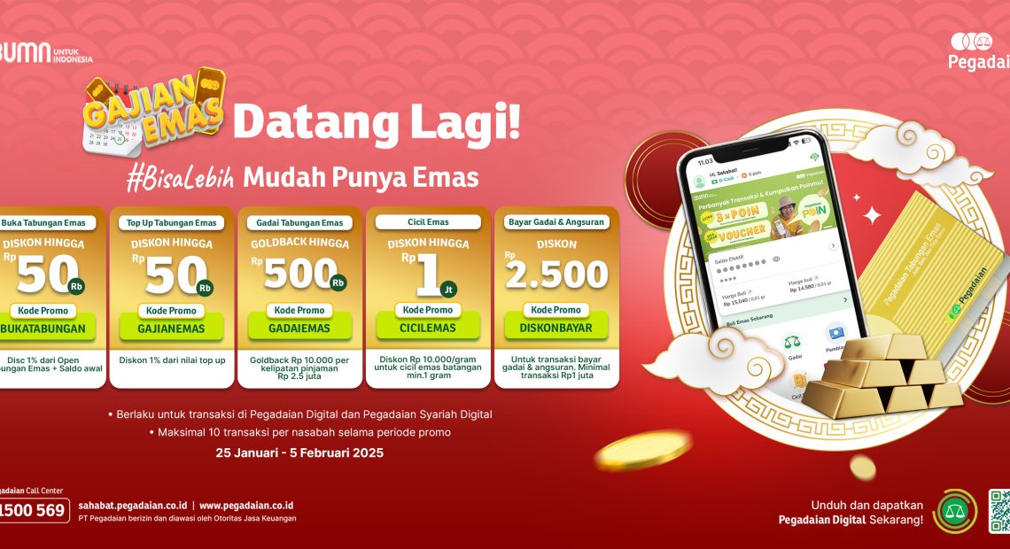 Berikut detail promo Gajian Emas Pegadaian periode 25 Januari hingga 5 Februari 2025;
