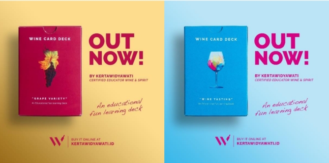 “Saat ini terdapat dua seri kartu yang sudah tersedia: Grape Variety dan Wine Tasting ke depan nya saya akan meluncurkan seri kartu lain yang pastinya akan menambah koleksi dari educational card desk ini,” ujar Widya.